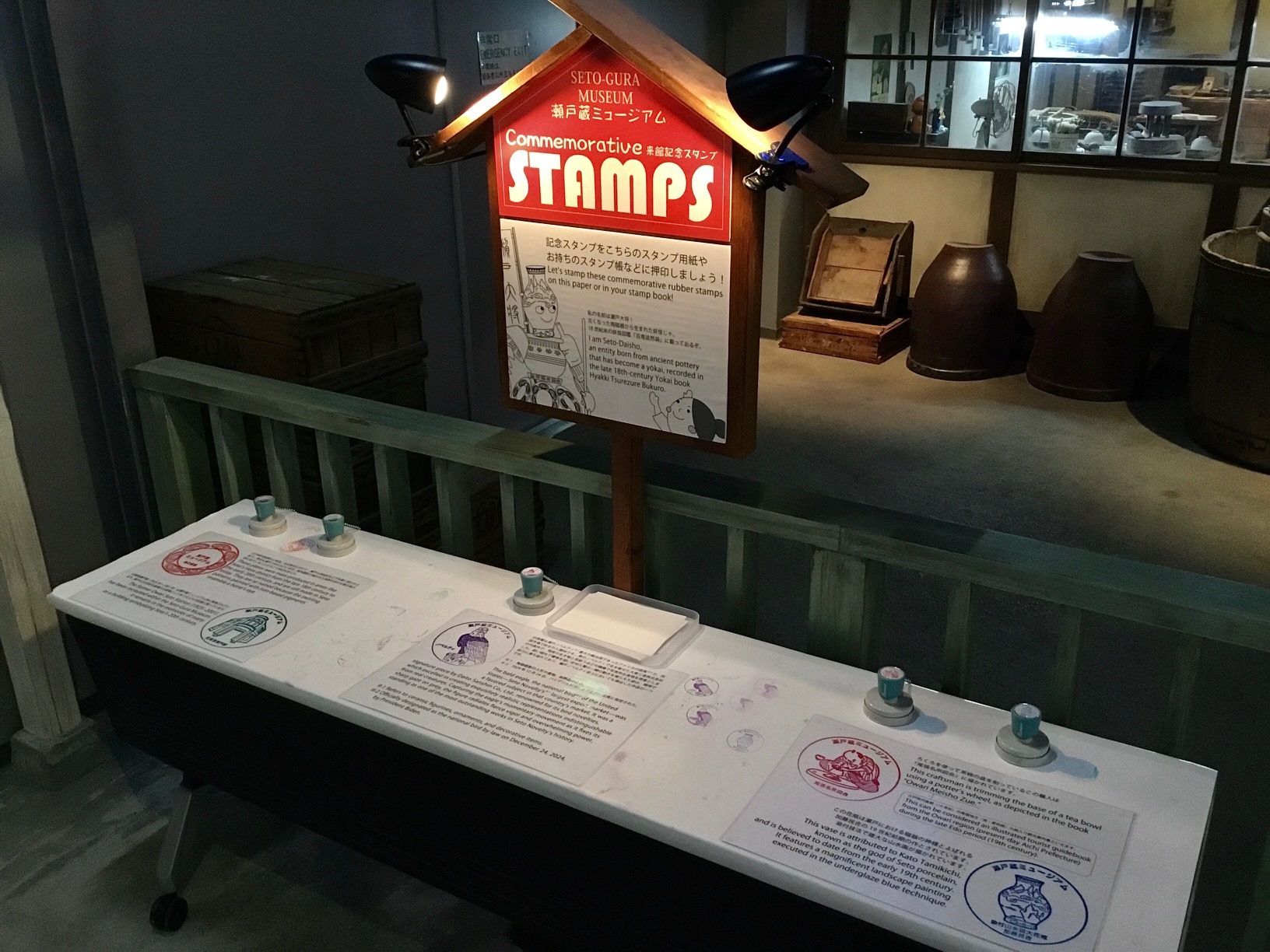 瀬戸蔵ミュージアム入口の「モ754」の前にスタンプコーナーを新設しました。旧尾張瀬戸駅、染付山水図花瓶などのスタンプを設置しています。入館の記念に是非スタンプを押してみませんか。