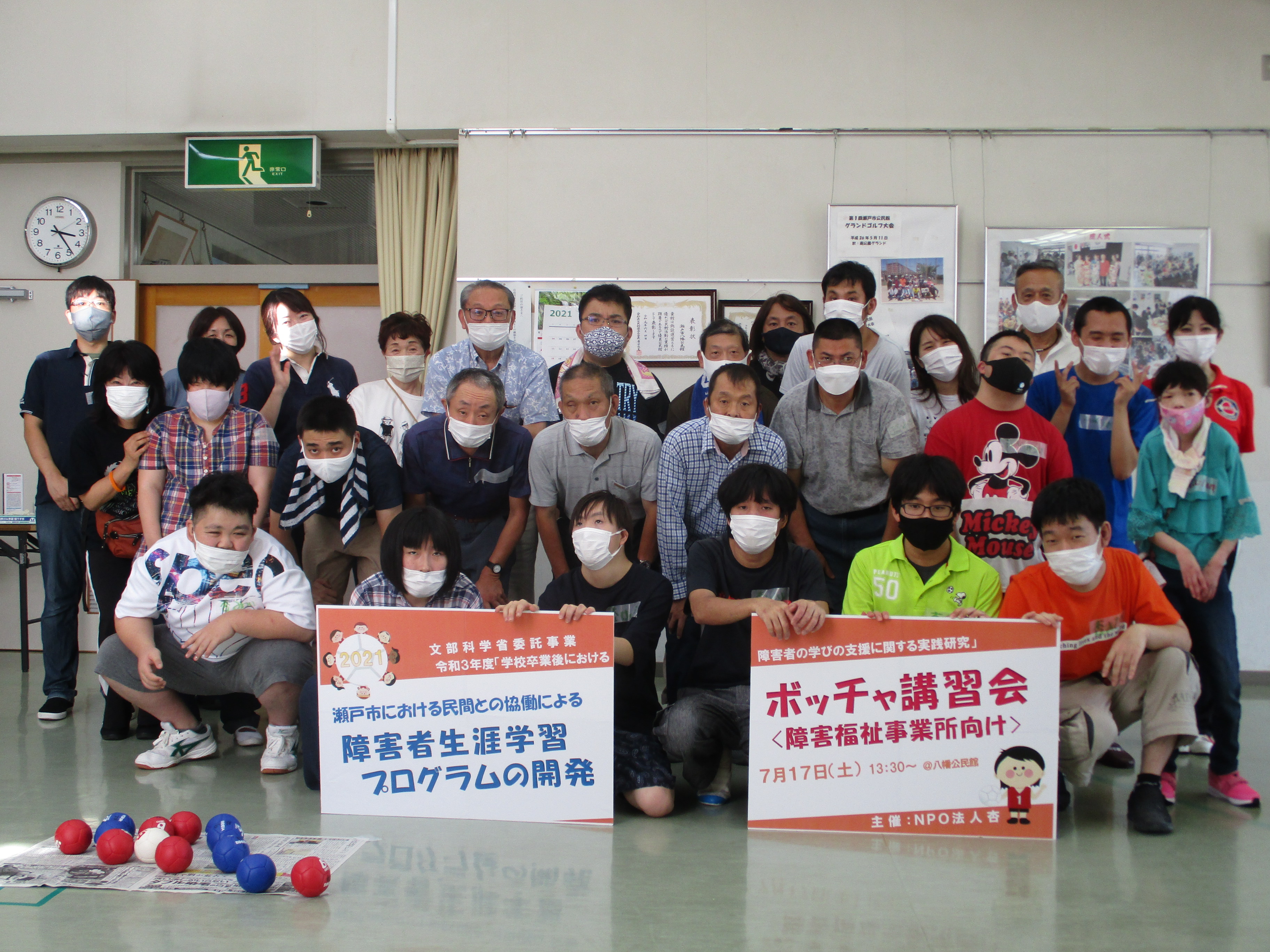 ボッチャ大会に参加するにあたり、障害福祉事業所においてもボッチャを普及する必要があることから、事前学習としてあいちボッチャ協会から講師を招き、事業所の支援者も含めた「ボッチャ講習会」を7月に開催しました。また、これとは別日程で本事業とボッチャや大会について知ってもらうことをねらいに、地域向けボッチャ講習会も開催しました。