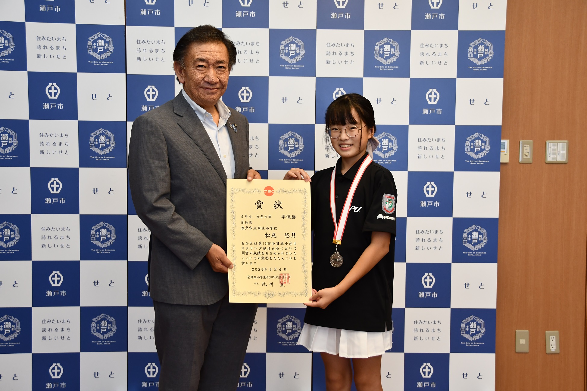 西陵小学校5年生の松尾 悠月(まつお ゆづき)さんが「第13回全日本小学生ボウリング競技大会」準優勝の報告に来てくださいました。