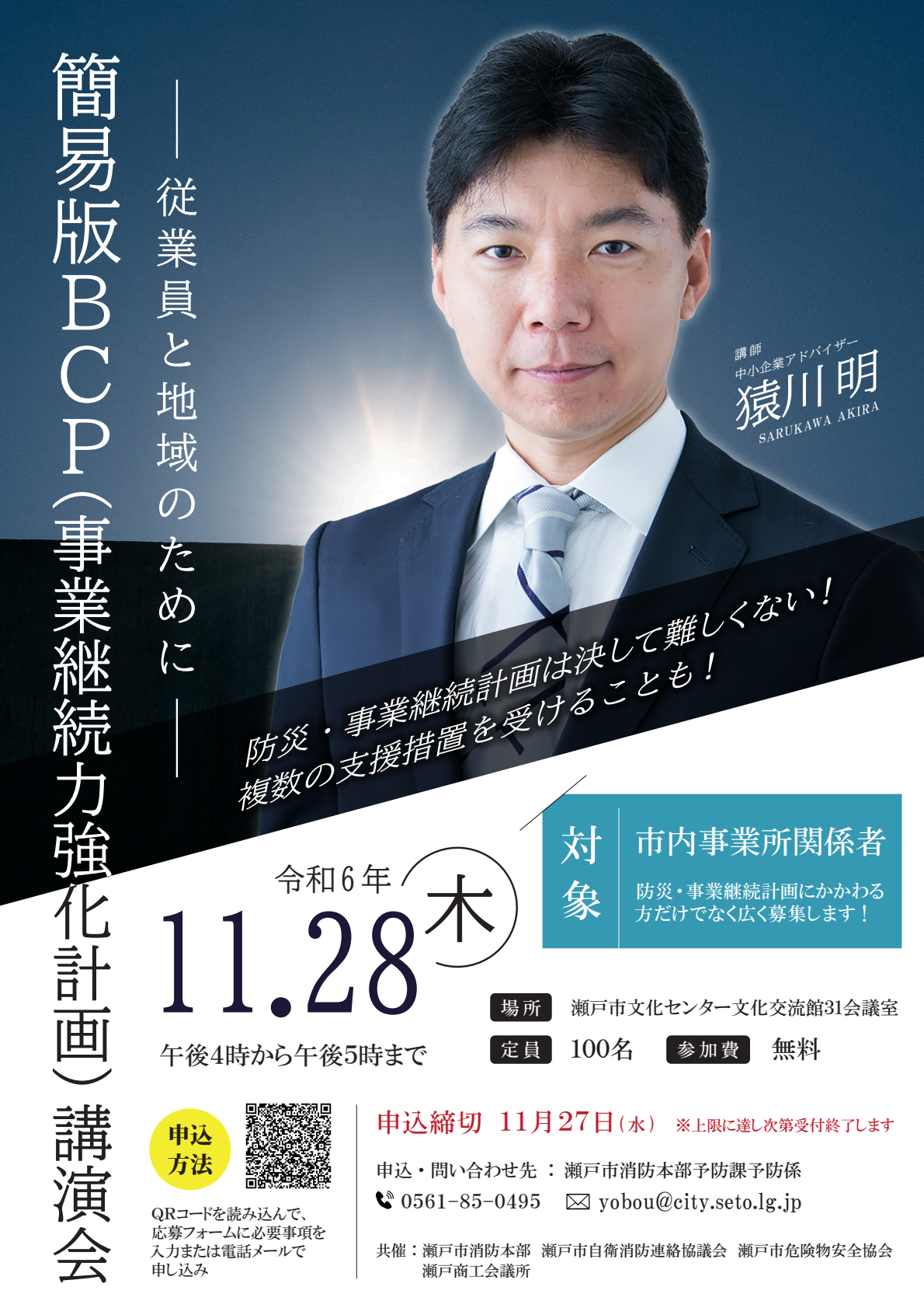 防災と簡易版BCPを策定するメリットとその方法について講演します