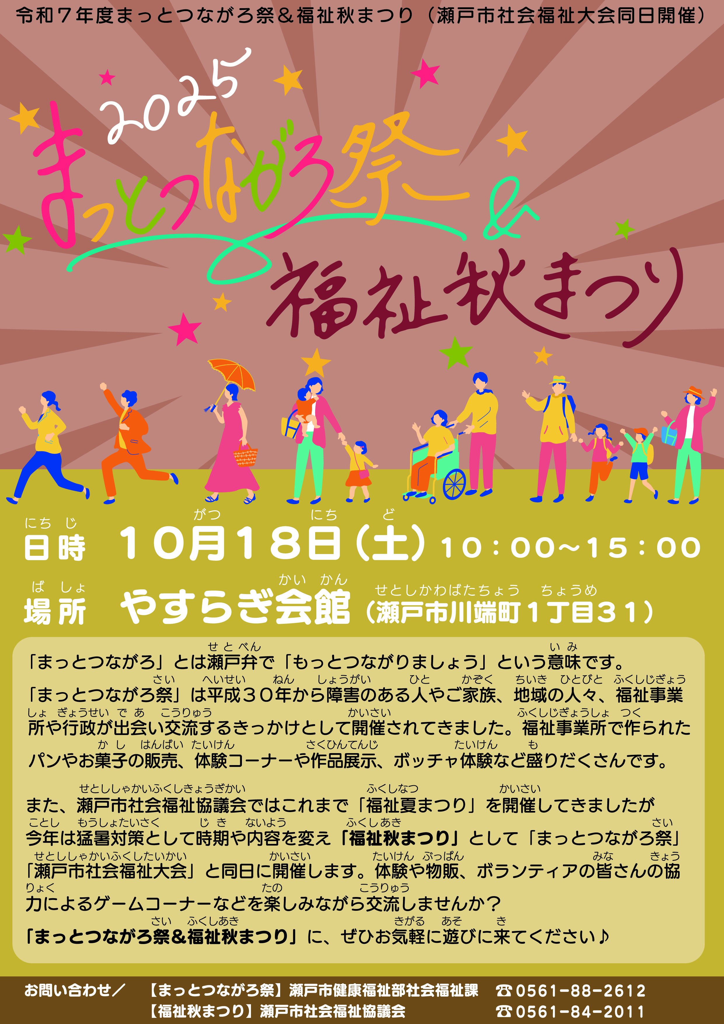また、今年は社会福祉協議会の「福祉秋まつり」、「瀬戸市社会福祉大会」と同日に開催します。