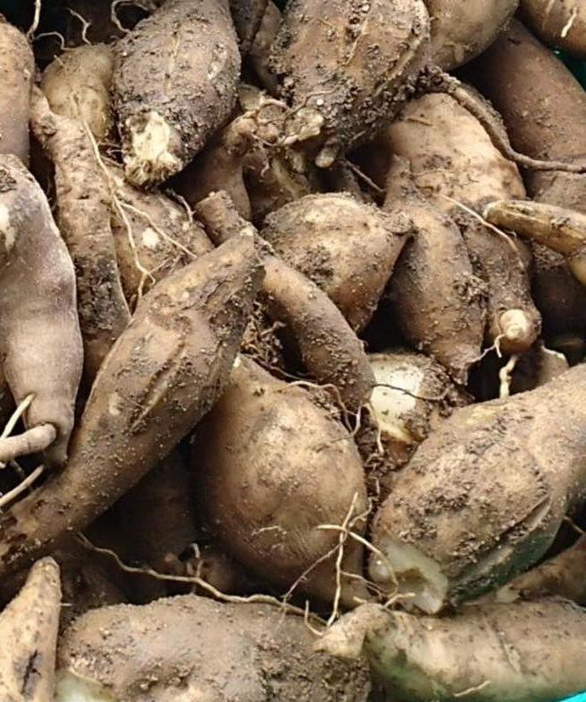 梨のようなシャキシャキとした食感と甘さが特徴の根菜です。オリゴ糖、ポリフェノールなどが多く含まれています。