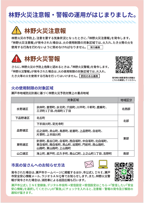 新たに林野火災注意報及び林野火災警報が発令されるようになります。