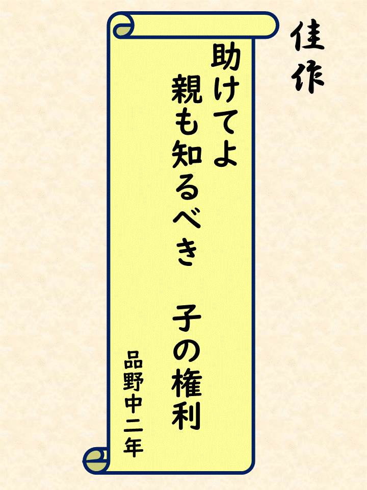 人権は生まれたときからすべての人が持っている権利です。子どものころから、子ども自身が自分の権利について知り、考えることはとても価値のあることだと思います。そんな子ども・若者たちの想いが込められた作品をご鑑賞ください。