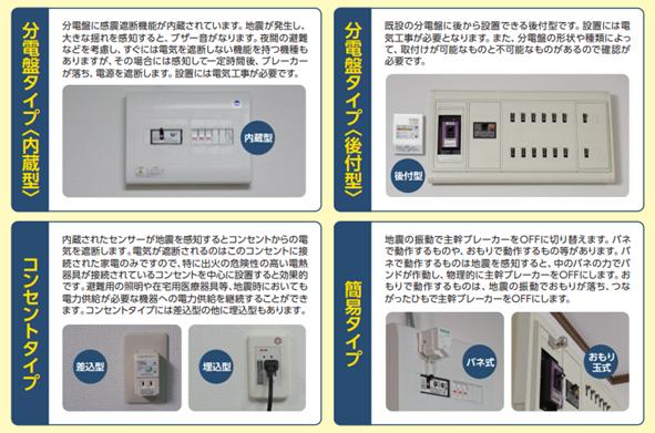 地震の強い揺れを感知した際に、自動的にブレーカーを落として電気の供給を停止する装置
