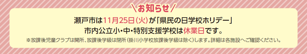 | 県民の日学校ホリデー | 11月25日(火曜) | |