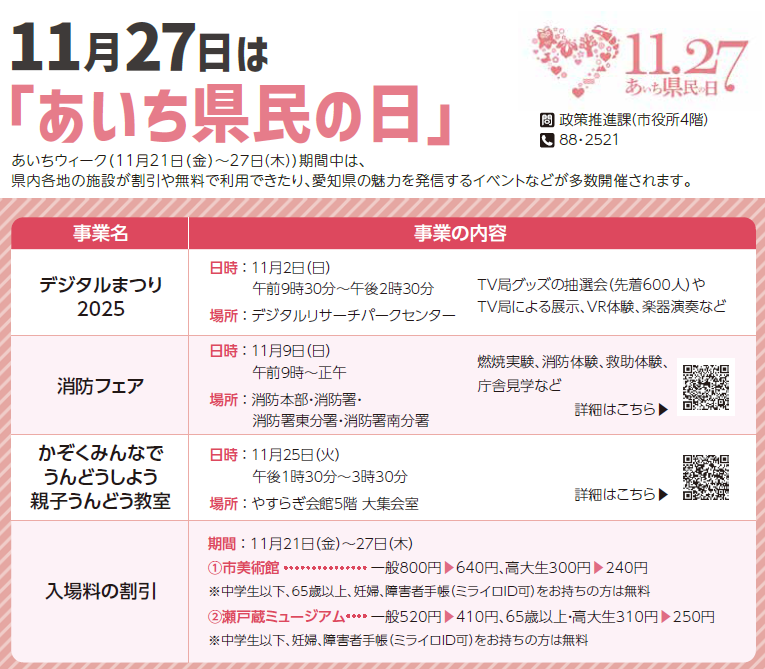 ▼あいちウィーク(11月21日(金曜)~27日(木曜))期間中は、瀬戸市でも以下のイベントが開催されます。