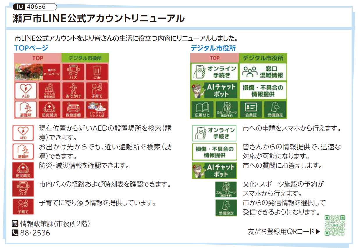 | 瀬戸市LINE公式アカウント | 情報政策課(0561-88-2536) | |